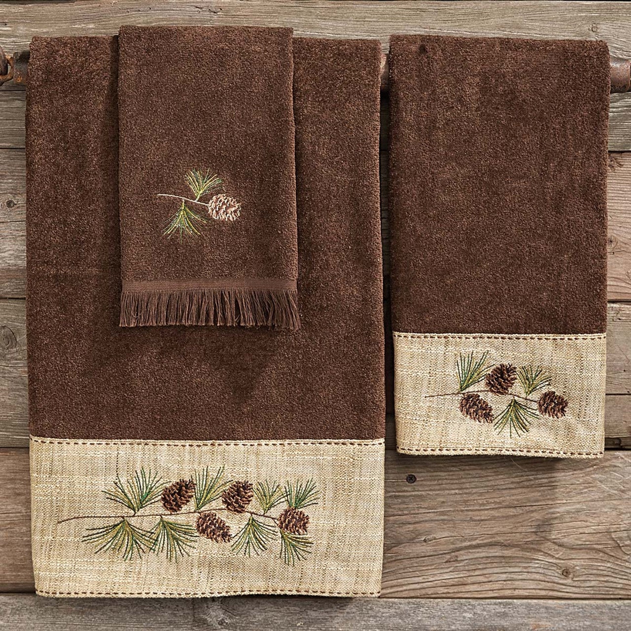 Compare Add to Cart The item has been added Pine Haven Hand Towel A Black Forest Decor Exclusive - These soft mocha 100% cotton towels feature embroidered pine branches and textured linen-like trim with contrast stitching for a beautifully rustic look. Measures 16"W x 30"L. View Details Please Select an option. Old Price $27.95 Sale Price: $23.95 23.95 Pine Haven Hand Towel, Quantity: Decrease Quantity: Increase Quantity: